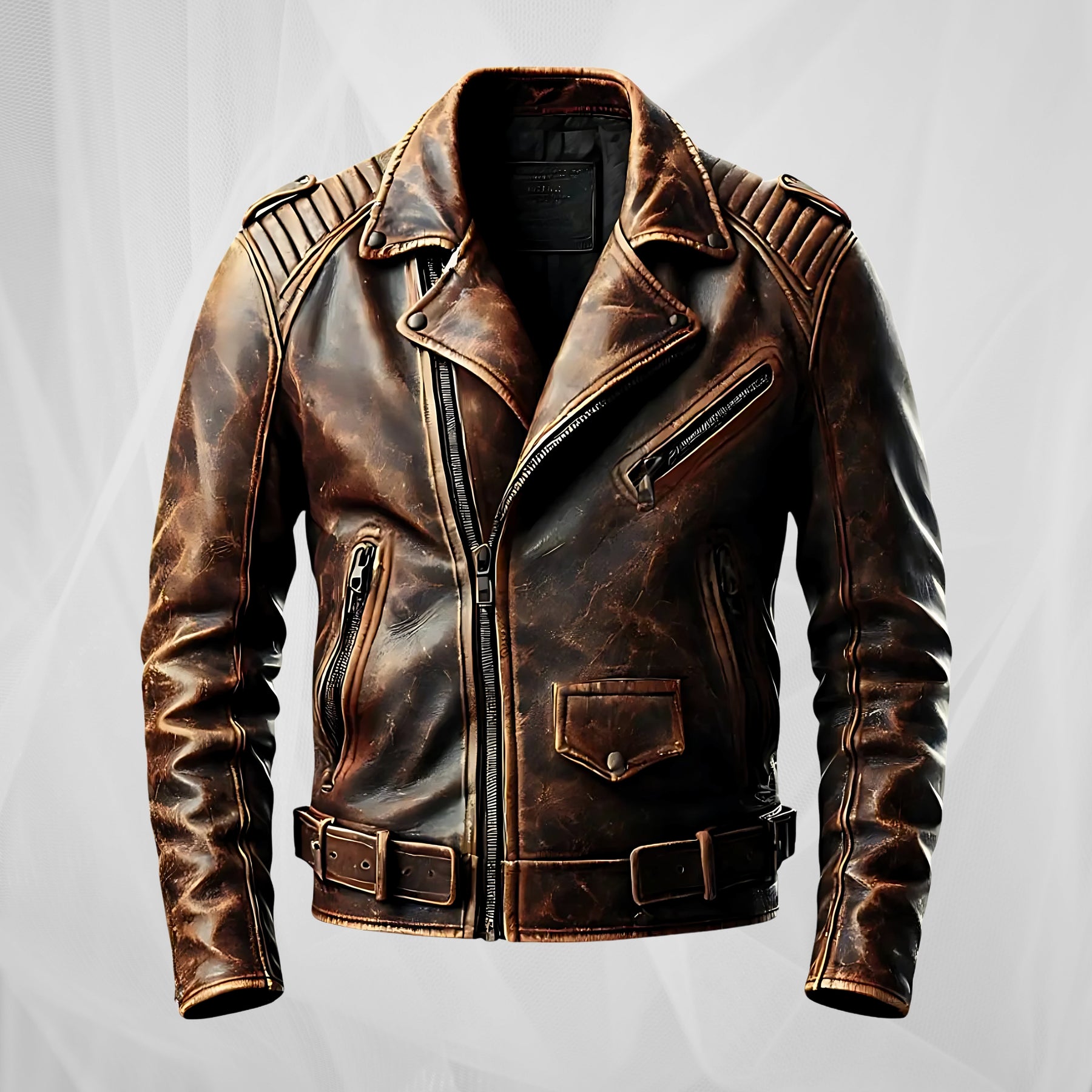 Imaginez comment vous conquériez la route ou la ville avec une veste qui porte l'esprit de la liberté et le style éternel. George est conçue pour les hommes qui apprécient l'apparence authentique et le savoir-faire artisanal. Le cuir marron usé et les épaules rembourrées ajoutent une touche unique, tandis que la ceinture élégante assure un ajustement parfait. Ce n'est pas qu'une veste : c'est une expression de votre individualité et de votre passion pour le classique.